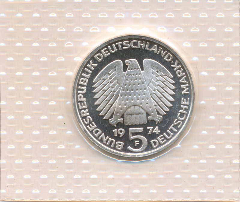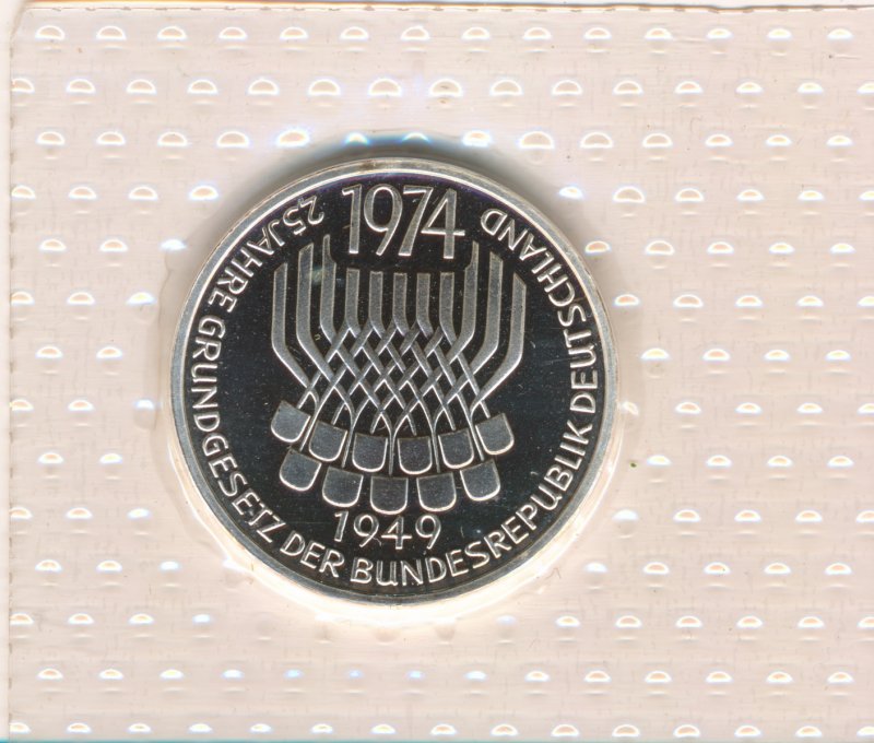 BRD 5 DM 1974 F 25 Jahre Grundgesetz PP Silber in Noppenfolie*