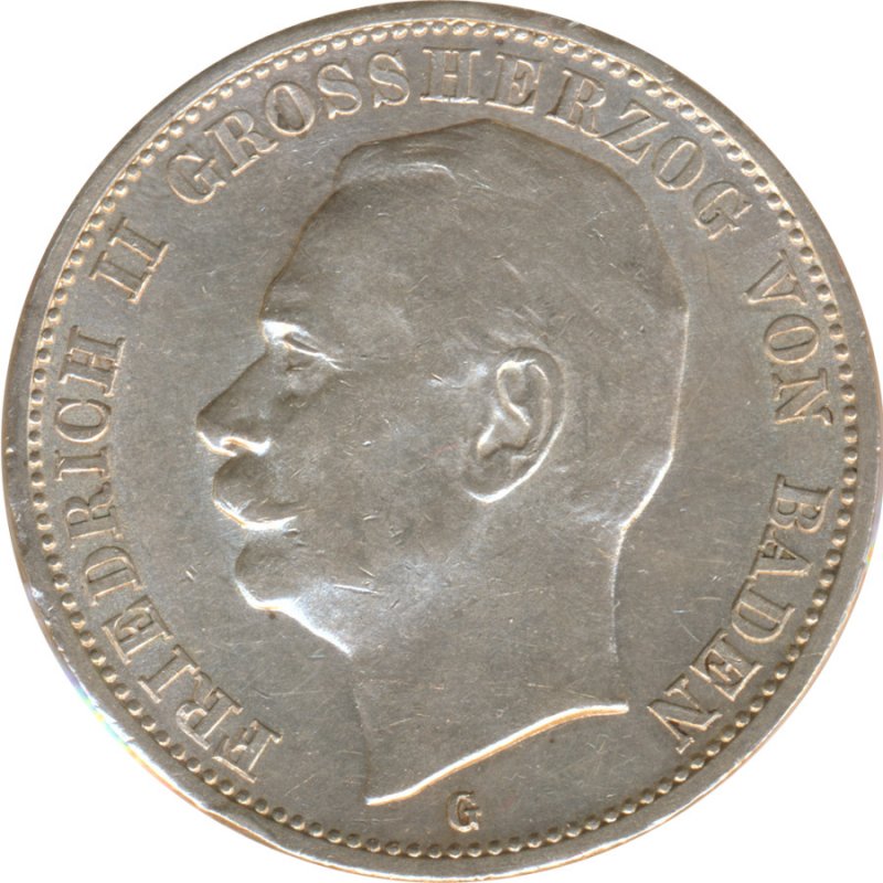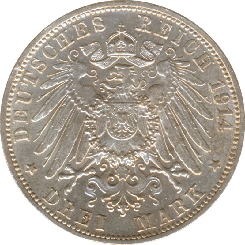 Baden 3 Mark 1914 G Friedrich II Silber*