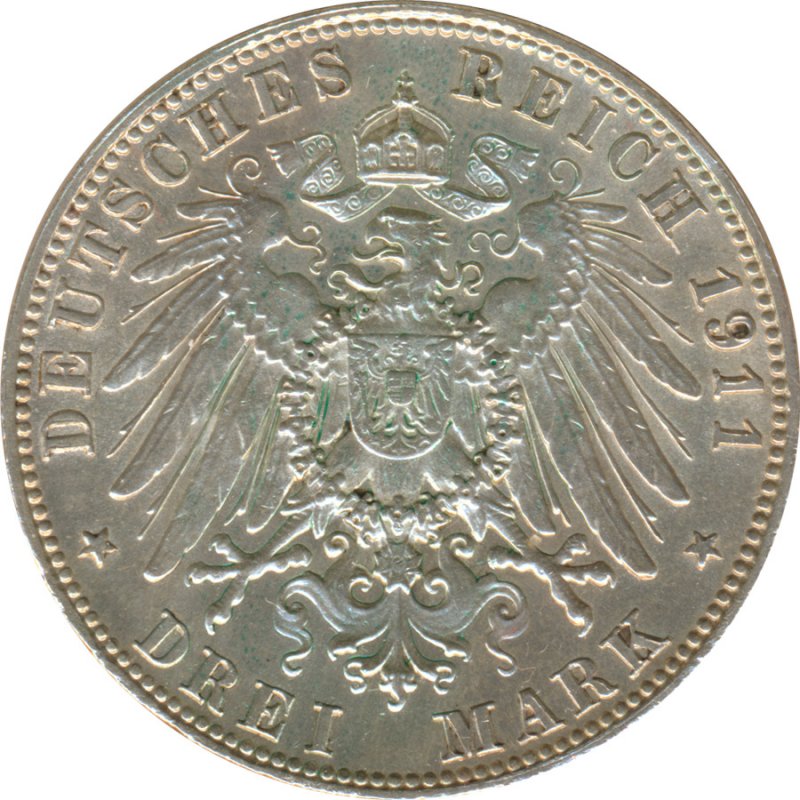 Bayern 3 Mark 1911 D 90. Geburtstag von Prinzregent Luitpold Silber*
