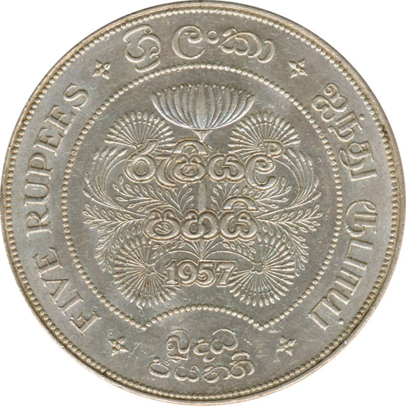 Ceylon 5 Rupees 1957 2.500 Jahre Buddismus Silber*