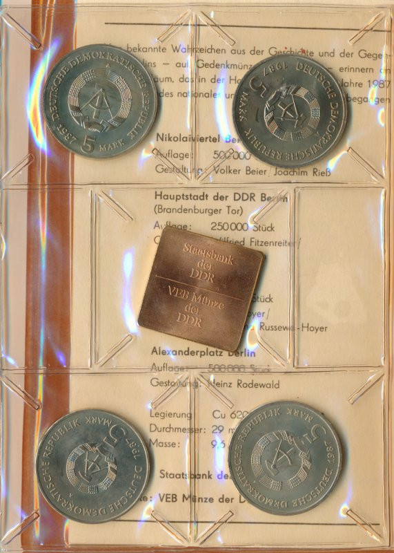 DDR Satz aus 4x 5 Mark 1987 A 750 Jahre Berlin verschweisst im orig. Etui*