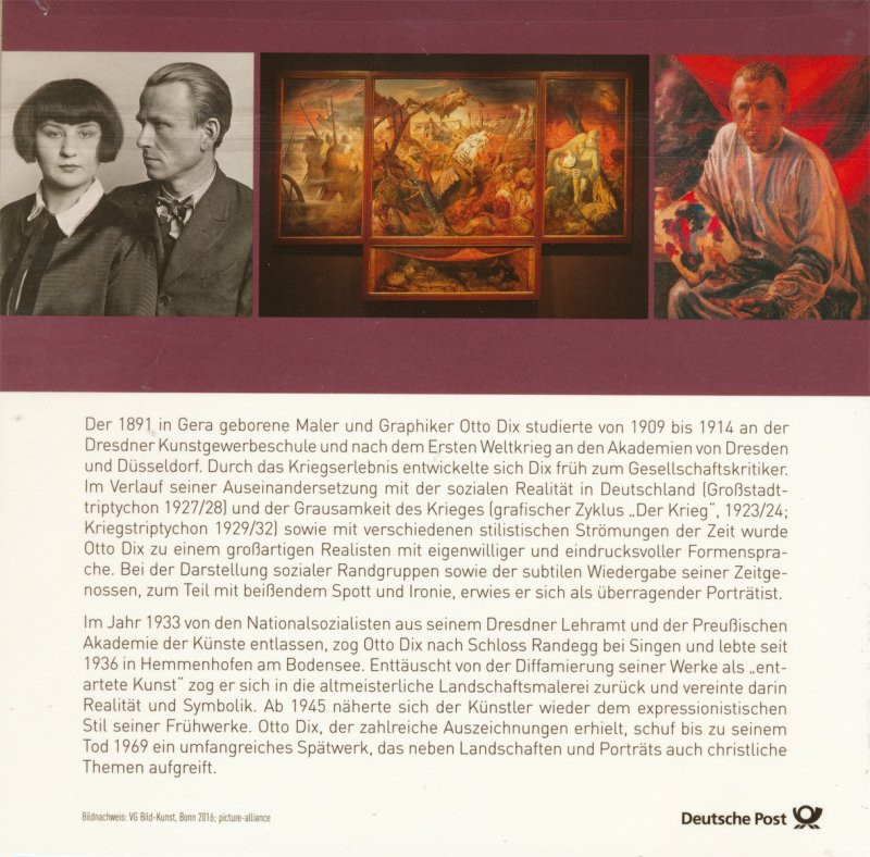 Deutschland 2016 - 20 Euro - 125. Geburtstag Otto Dix PL im Folder der Deutschen Post*