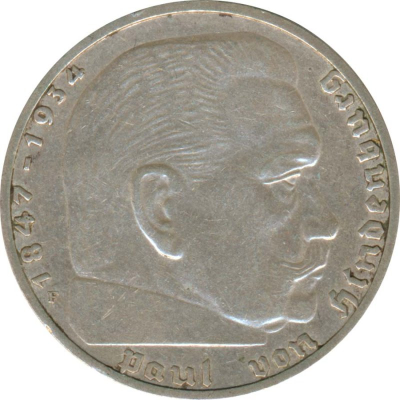 Drittes Reich 2 Mark 1939 F Paul von Hindenburg Silber*
