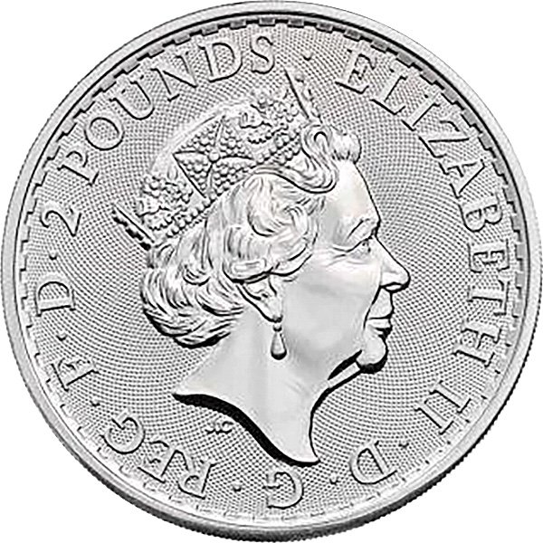 Die britische Anlagemünze zeigt auf der Bildseite die weibliche Nationalfigur von Großbritannien mit Schild und Dreizack.