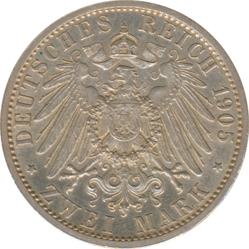Land: Kaiserreich - Lübeck Jahr: 1905 A Nennwert: 2 Mark Prägeort: Berlin |