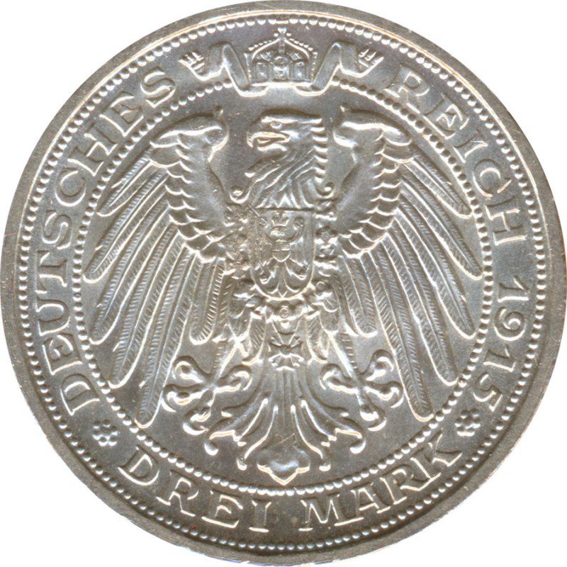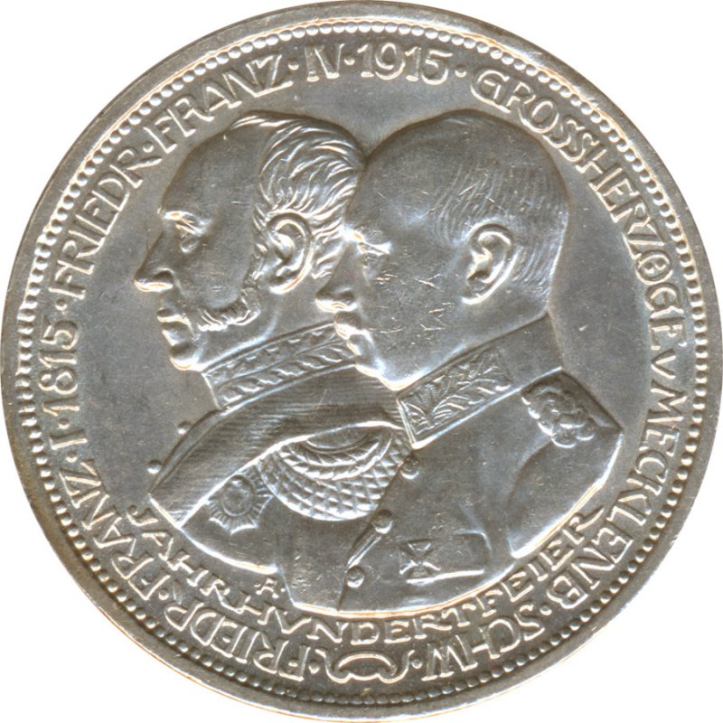 Mecklenburg-Schwerin 3 Mark 1915 A 100 Jahre Großherzogtum Silber*