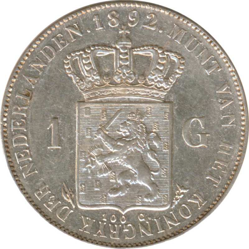 Niederlande 1 Gulden 1892 Wilhelmina Silber*