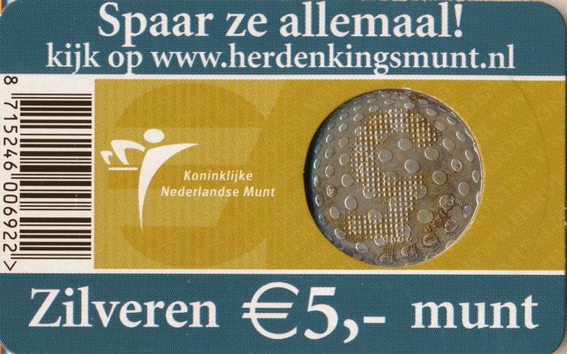 Niederlande 5 Euro 2005 60 Jahre Frieden & Freiheit Silber in Karte*