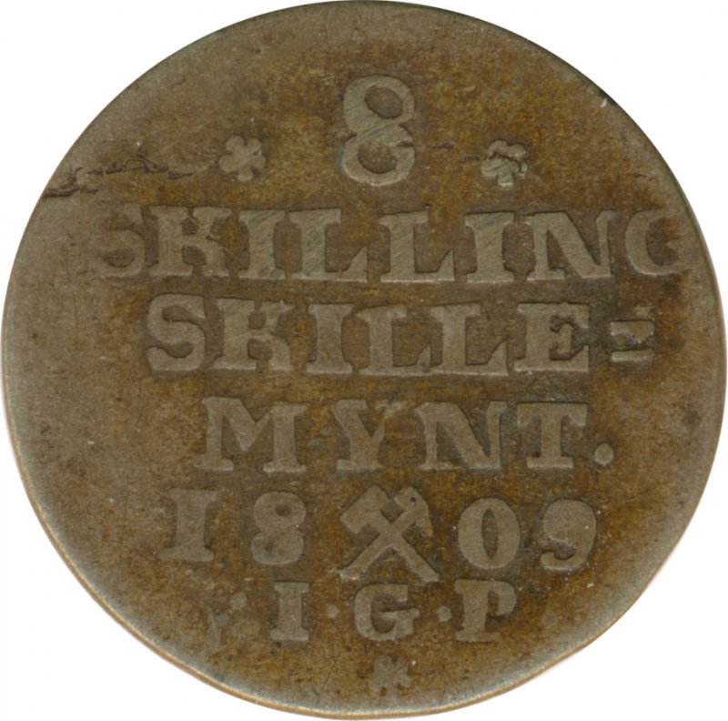 Norwegen 8 Skilling 1809 IGP Friedrich VI Silber*