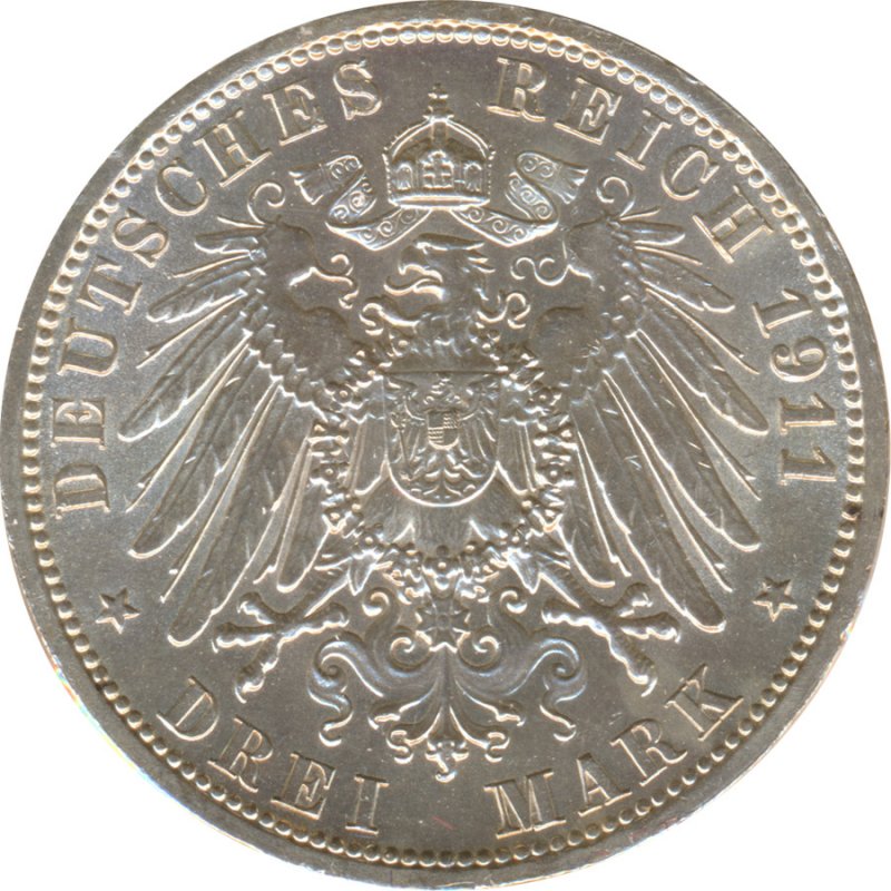 Preussen 3 Mark 1911 A Wilhelm II Silber*