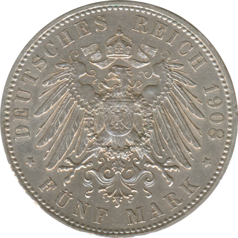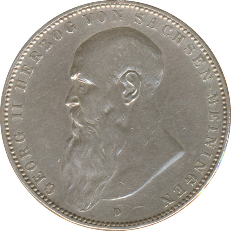 Sachsen-Meiningen 5 Mark 1908 D Georg II Silber*