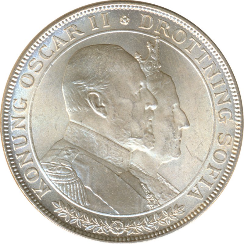 Schweden 2 Kronor 1907 Goldene Hochzeit des Königspaares Silber*