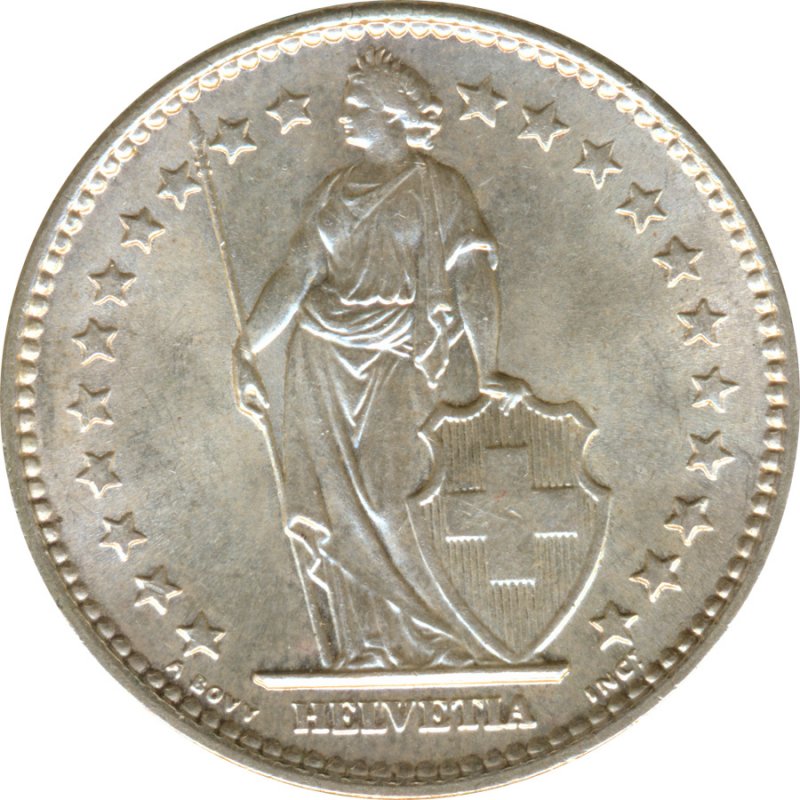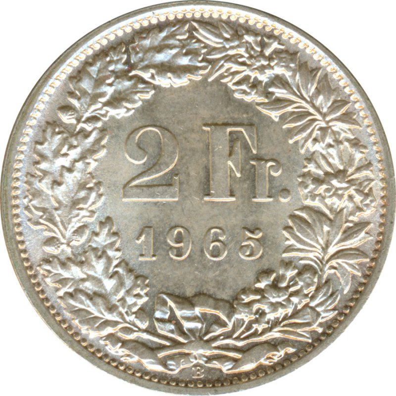 Schweiz 2 Franken 1965 B Stehende Helvetia Silber*