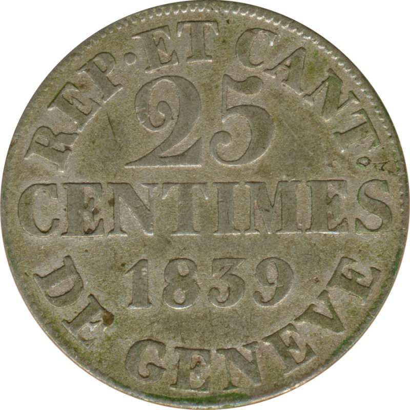 Schweiz 25 Centimes 1839 Kanton Genf Silber*