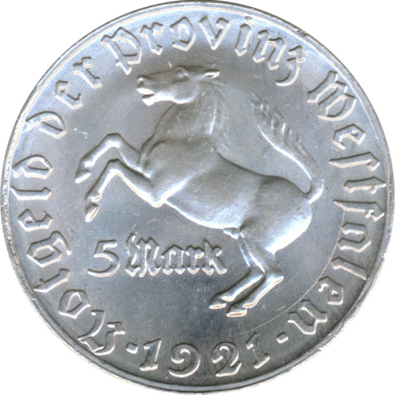 Westfalen 5 Mark 1921 Freiherr vom Stein*