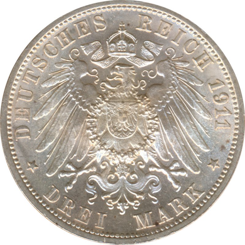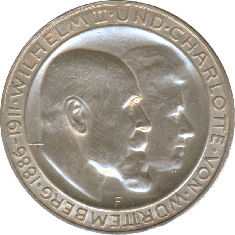 Württemberg 3 Mark 1911 Silberne Hochzeit Silber*